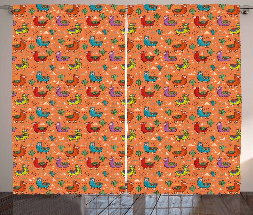 ABAKUHAUS Занавеска в деревенском стиле «Кактус», разноцветный цветок альпаки, ленточная занавеска с рюшами для спальни, петлями и крючками, 280 x 260 см, разноцветная