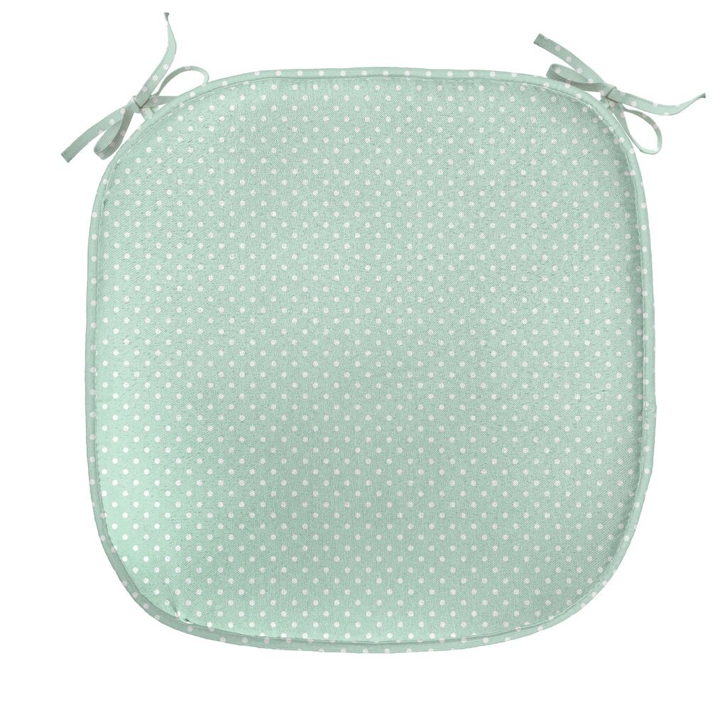 ABAKUHAUS Зеленая подушка для обеденного стула, маленький горошек в стиле ретро, декоративная водонепроницаемая подушка с ремнями для кухонных сидений, 40 см x 40 см, мятно-зеленый белый, серебро