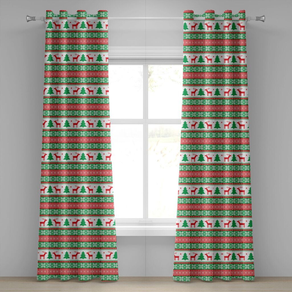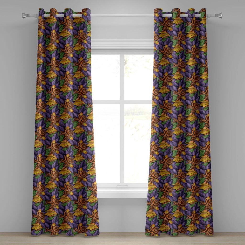 ABAKUHAUS Зелено-белая занавеска с люверсами, тема Алоха в акварельном стиле, монстера, пальмовые листья, тропические иконы, декоративные 2-панельные оконные шторы, 280 см x 260 см, зеленый и миндально-зеленый