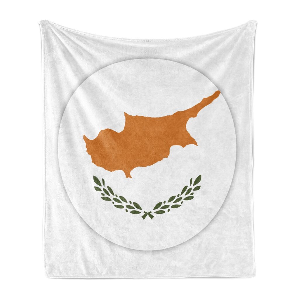 ABAKUHAUS Кипр Мягкое фланелевое флисовое одеяло, закругленный флаг Южного Кипра, уютный плюш для использования в помещении и на открытом воздухе, 125 x 175 см, белый оранжевый и оливково-зеленый