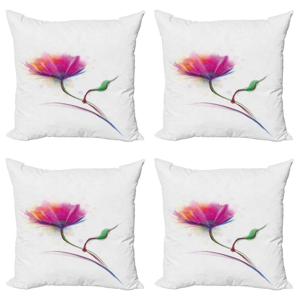 ABAKUHAUS Набор чехлов для подушек с цветами (4 предмета), акварельный цветок мака, современная двусторонняя цифровая печать, 50 см x 50 см, фуксия