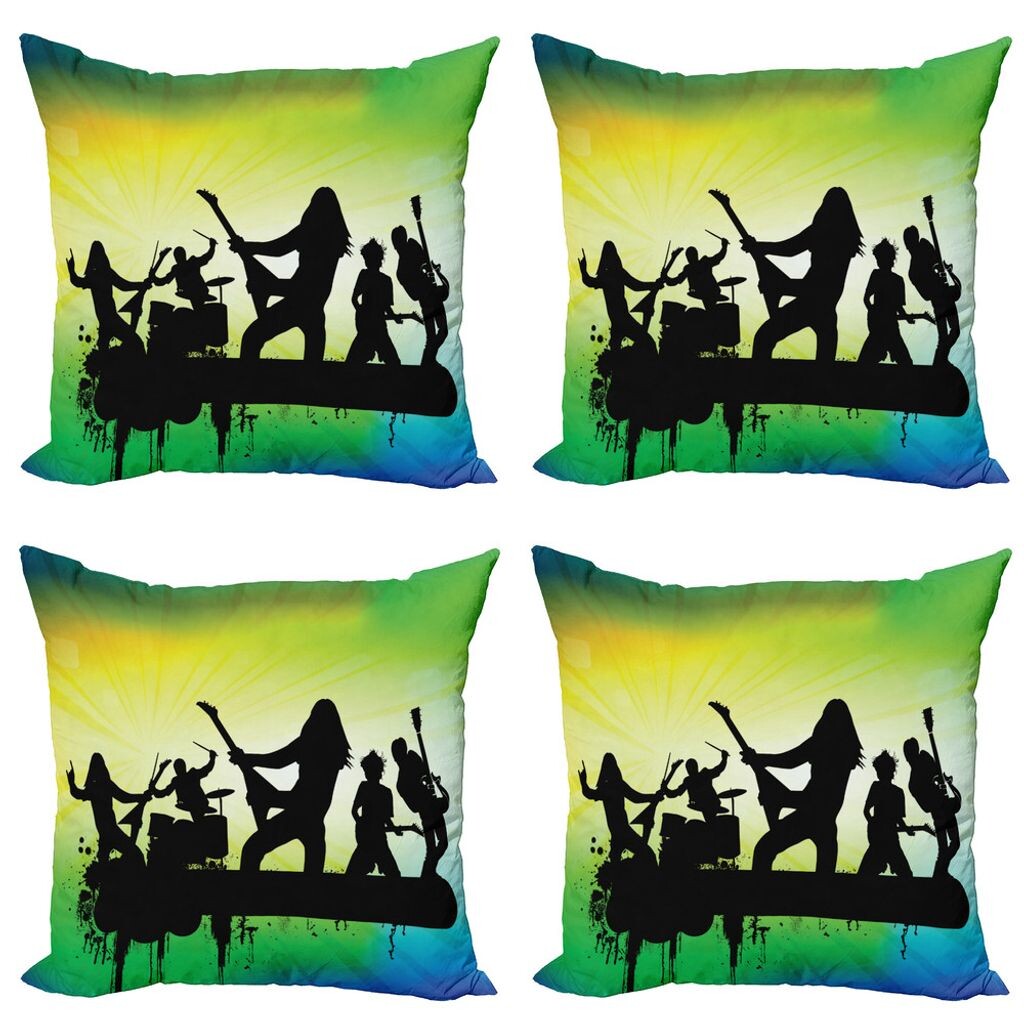 ABAKUHAUS Набор чехлов на подушки Rock'n'Roll (4 предмета), энергичная рок-группа, современная двусторонняя цифровая печать, 45 см x 45 см, разноцветные