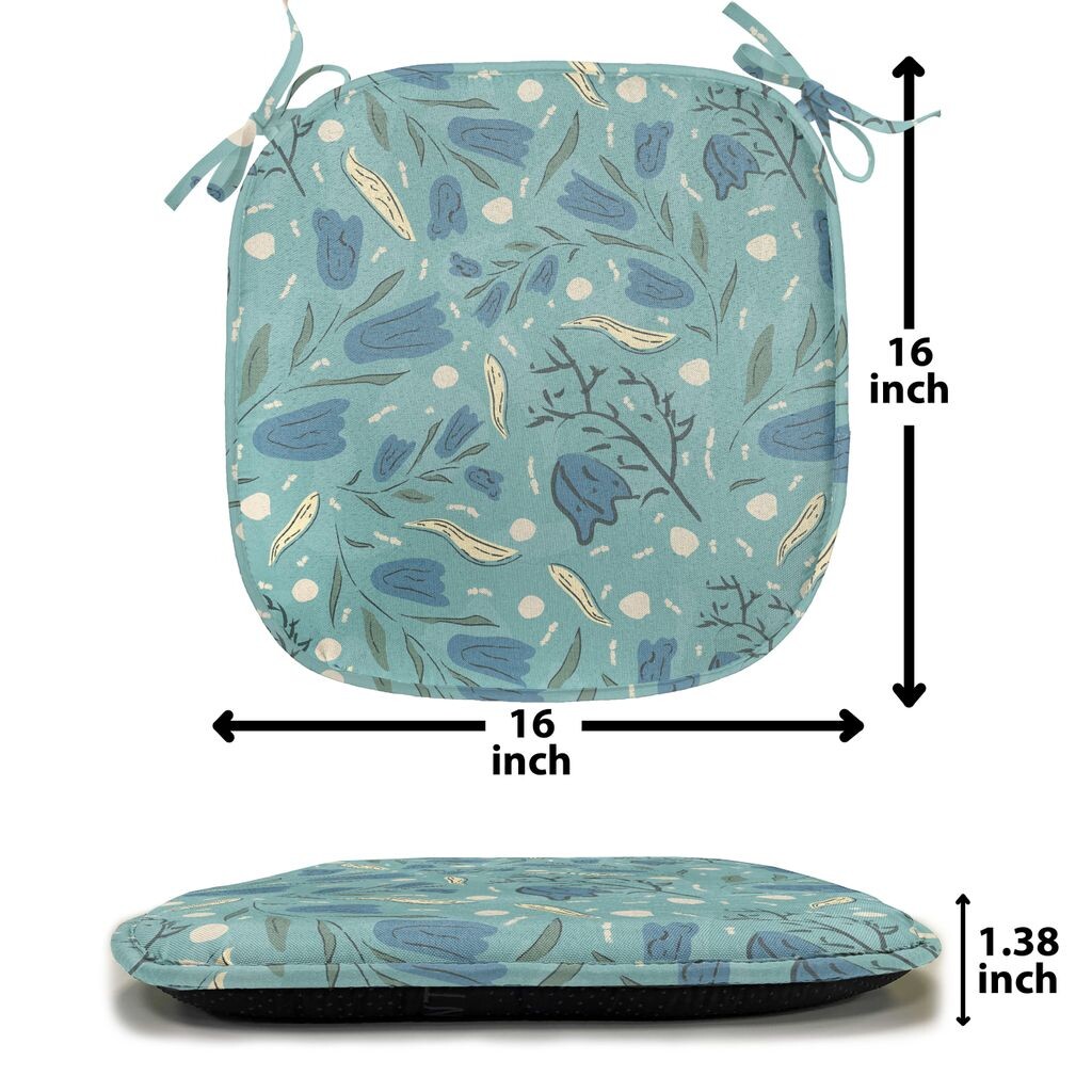 ABAKUHAUS Подушка для обеденного стула из морской пены, акварельный цветочный мотив, декоративная водонепроницаемая подушка с ремнями для кухонных сидений, 40 см x 40 см, морская пена, ночной синий цвет слоновой кости, зеленый