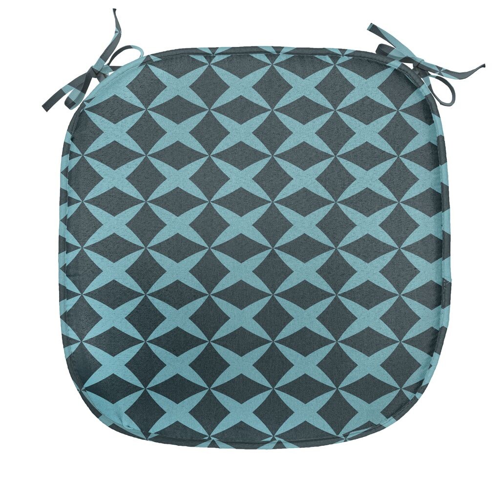 ABAKUHAUS Синяя подушка для обеденного стула с толстыми скрещенными линиями Декоративная водонепроницаемая подушка с ремнями для кухонных сидений 40 см x 40 см Синий Серый Светло-синий