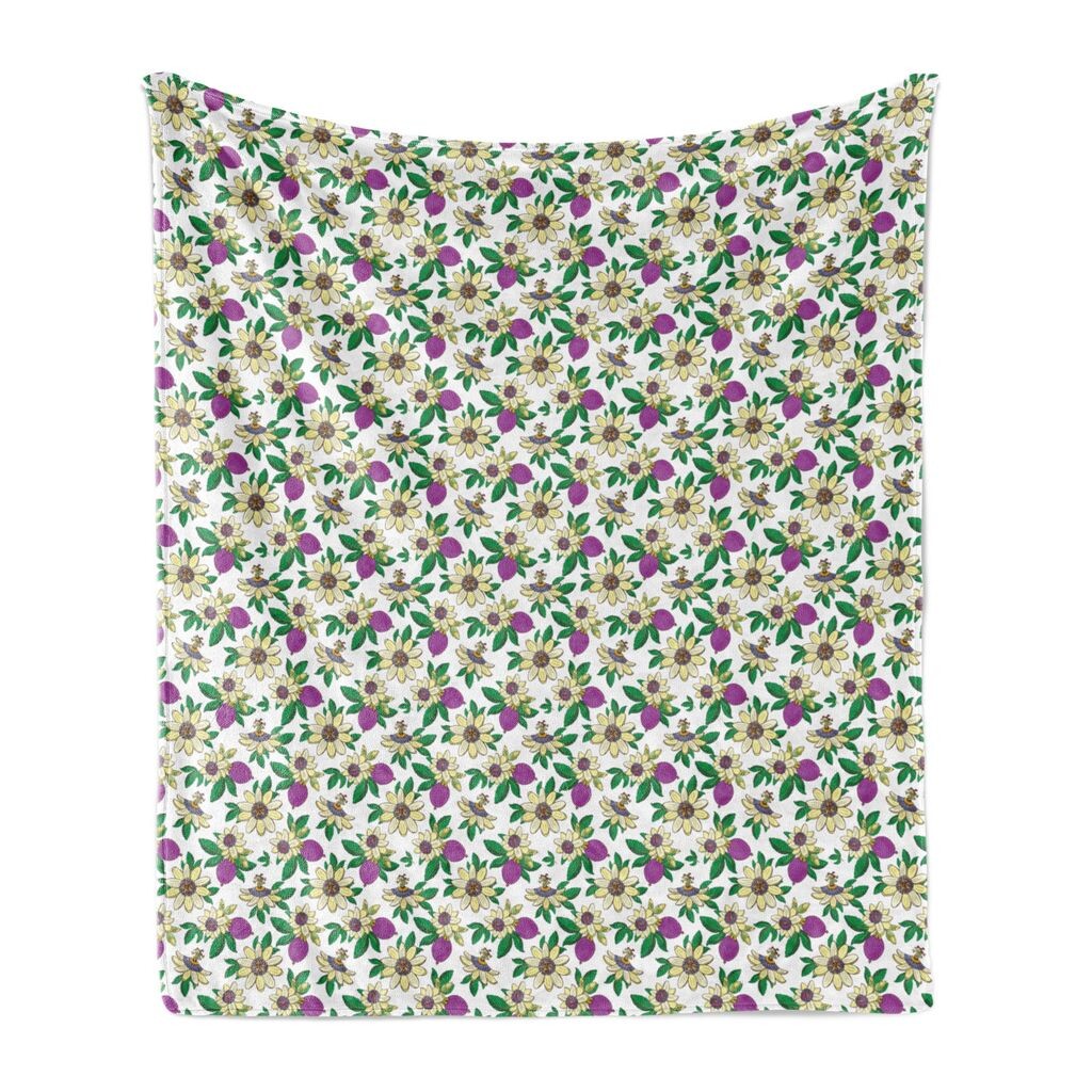 ABAKUHAUS Тропическое мягкое фланелевое флисовое одеяло, цветы и фрукты маракуйи, уютный плюш для использования в помещении и на улице, 125 x 175 см, разноцветное