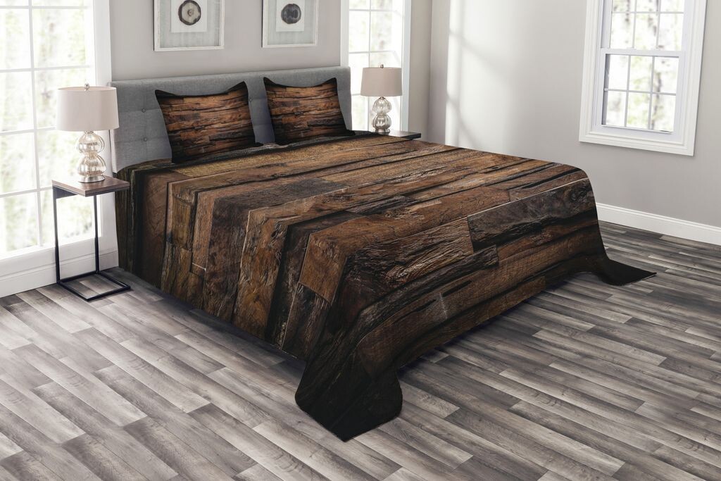 ABAKUHAUS Шоколадное покрывало, грубое темное дерево, комплект с моющимися наволочками, для односпальных кроватей 264 x 220 см, коричневый темно-коричневый