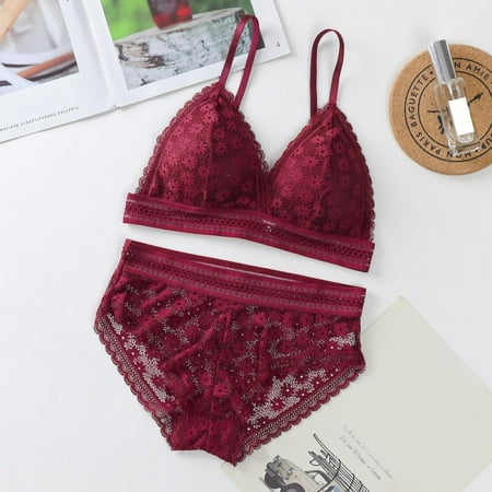 Underwired Bra Lace Beauty Back Underwear Two-piece Set Gather Seamless Women s Underwear Panties Red