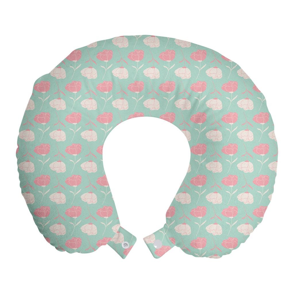 ABAKUHAUS Flowers Дорожная подушка для шеи, пастельные цветочные букеты, пенопластовые дорожные принадлежности для самолета и автомобиля, 30x30 см, пастельно-розовый и мятно-зеленый