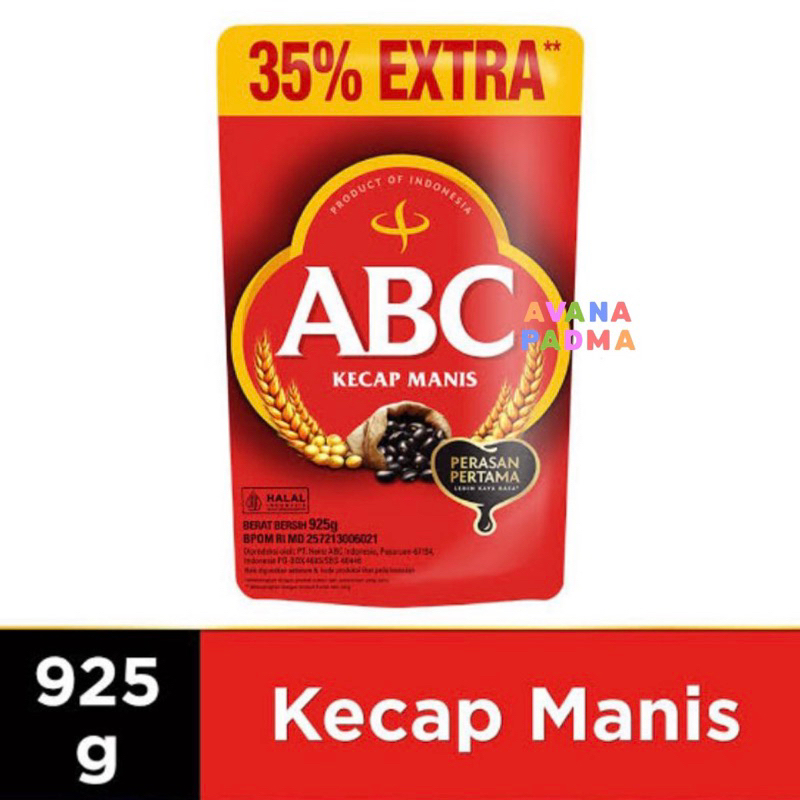 Kecap manis ABC dibuat dengan kedelai, gandum dan gula merah pilihan sehingga menghasilkan kecap manis dengan citarasa mantap, hitam dan kental. KOMPOSISI : Gula, air, garam, kedelai, biji gandum, pengawet natrium benzoat, pemantap nabati.