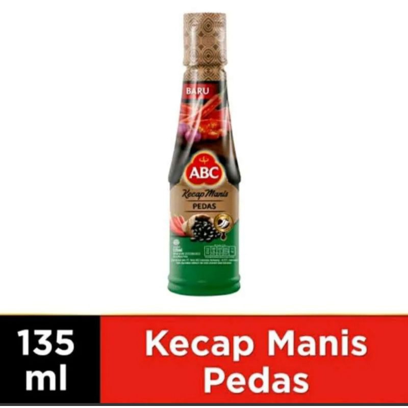 Kecap Pedas ABC 135ml, terbuat dari perasan pertama kedelai pilihan. Untuk masakan yang lebih kaya rasa, siapapun yang masak. Kecap ABC, disukai oleh 9 dari 10 ibu di Indonesia. Detail: - Perasan Pertama Kedelai Pilihan - Lebih Kaya Rasa - Lebih Kental & Hitam Komposisi: Gula, sari kacang kedelai 12% (mengandung gandum 0.6%), air, garam, pewarna alami karamel III dan IV, pengawet natrium benzoat,penstabil nabati, pengatur keasaman,