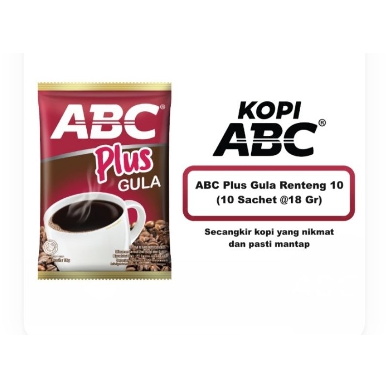 ABC PLUS UNTUK PENIKMAT KOPI HITAM GULA SEJATI Campuran sempurna antara kopi bubuk dan gula menciptakan kopi gula dengan rasa yang mantap. Dengan takaran gula yang tepat tercipta kopi gula dengan aroma yang menggugah selera. Pas untuk para penggemar kopi sejati.