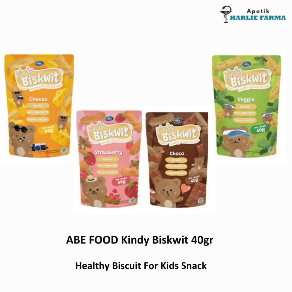 Abe Food Kindy Biskuit adalah biskuit sehat yang ditujukan untuk anak-anak, khususnya yang sedang tumbuh gigi, dengan tekstur lembut yang baik untuk melatih pengunyahan. Varian rasa yang tersedia antara lain Choco, Cheese, Strawberry, dan Veggie. Biskuit ini juga bebas dari MSG, pewarna, dan pengawet buatan.