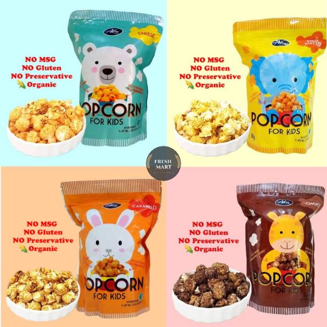 Abe Popcorn merupakan popcorn premium pertama di Indonesia yang dibuat untuk anak-anak. Terbuat dari :