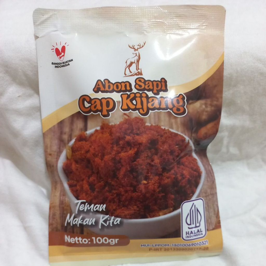 ABON SAPI CAP KIJANG HASIL OLAHAN YANG TERBUAT DARI BAHAN PILIHAN BERGIZI,SETIAP GIGITAN MEMBERIKAN CITA RASA YANG KHAS MENGGUGAH SELERA MAKAN KHUSUSNYA ANAK-ANAK 100% HALAL HARGA TERJANGKAU