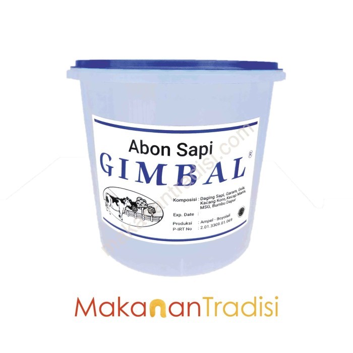 Abon Sapi Gimbal Abon daging sapi dengan tingkat serat daging sangat tinggi dan racikan rempah-rempah istimewa sesuai untuk pelengkap makan nasi, bubur, ataupun untuk isian roti. Tersedia dalam kemasan dus 3 Kg. *Pesanan yang masuk diatas jam 10:00 WIB akan dikirim dihari kerja berikutnya.. Dan untuk pesanan hari Sabtu, Minggu dan hari libur Nasional akan diproses hari kerja berikutnya.