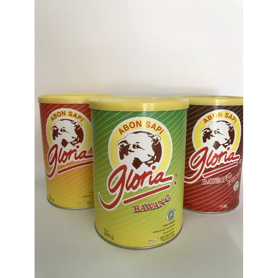 Abon sapi gloria kaleng pedas dan ori 250gr