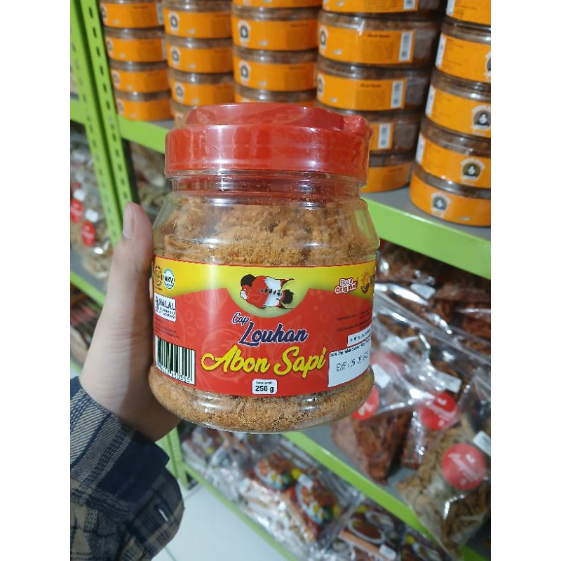 Abon sapi asli dengan merek Cap Louhan adalah produk yang dijual dengan rasa yang enak dan gurih. Abon sapi ini terbuat dari daging sapi yang berkualitas sehingga memberikan rasa yang lezat pada makanan. Keunggulan dari abon sapi original Cap Louhan adalah rasa yang enak dan gurih serta terbuat dari daging sapi berkualitas.