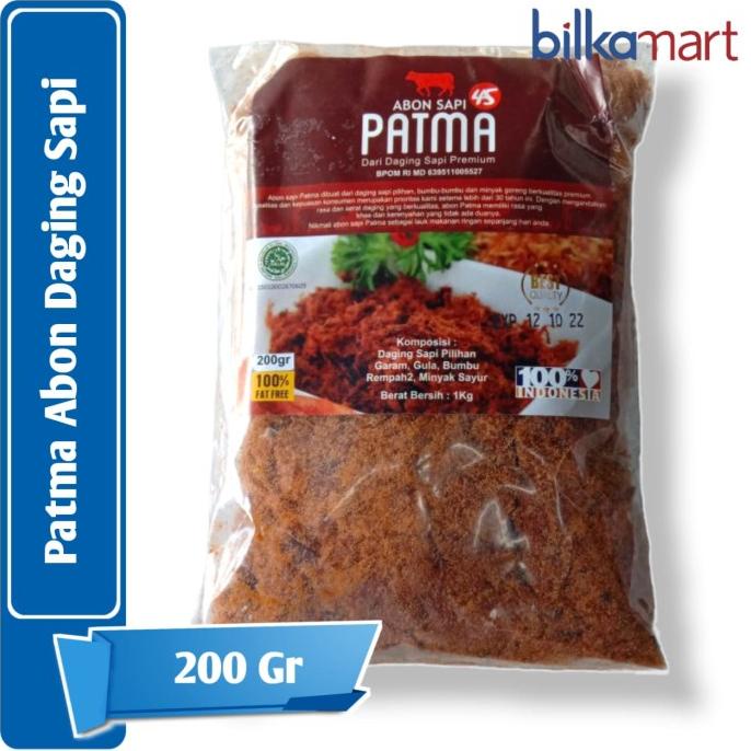 Abon Sapi Patma dibuat dari daging sapi pilihan, bumbu-bumbu, dan minyak goreng berkualitas premium. Sudah diproduksi selama 30 tahun. Dengan mengandalkan rasa dan serta daging yang berkualitas abon Patma memiliki rasa yang khas dan kerenyahan yang tidak ada duanya.