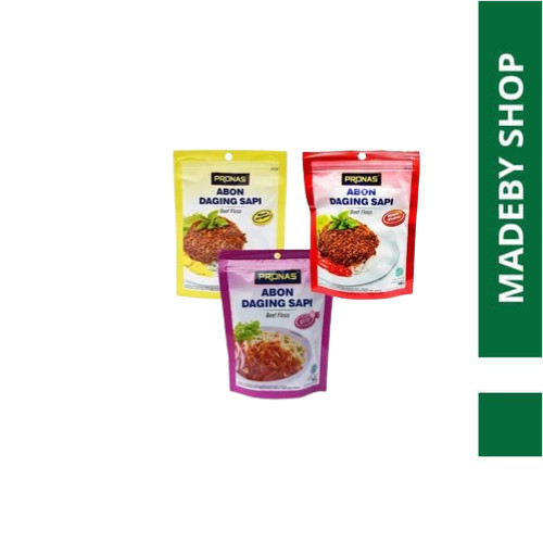 - Abon Daging Sapi Pronas terbuat dari daging sapi dan bumbu berkualitas, dengan pengolahan yang higienis menjadikan cita rasa yang gurih dan nikmat. Ditambah dengan bawang goreng yang crunchy.