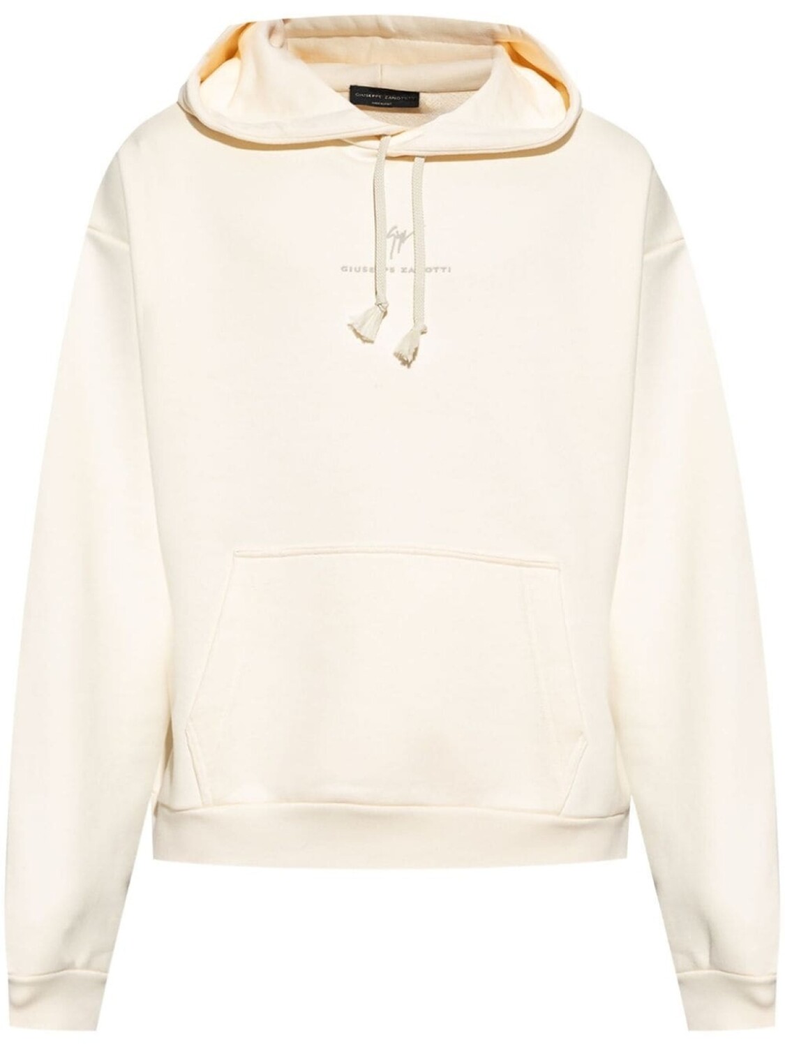 Giuseppe Zanotti толстовка с капюшоном и вышитым логотипом, нейтральный цвет