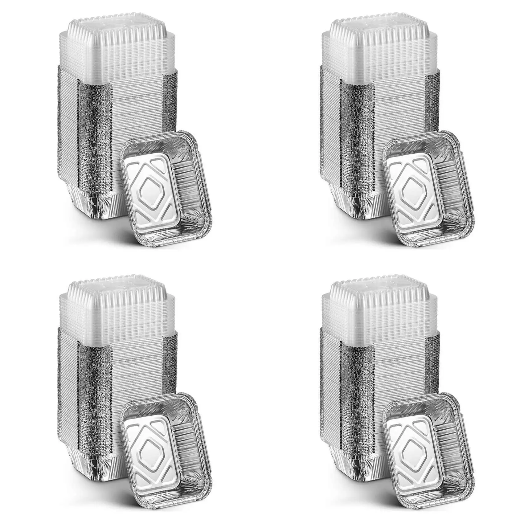 ABUI-4Set Одноразовая кастрюля на вынос с прозрачной крышкой, прямоугольный лоток из алюминиевой фольги, плотно запечатанный, емкость 410 мл