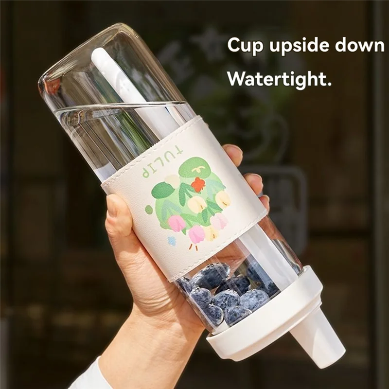 ABVG-Cute Чашка для чая с молоком и соломинкой Простая портативная чашка Большая вместительная чашка для молока с крышкой Прозрачная герметичная соломенная чашка 850 мл