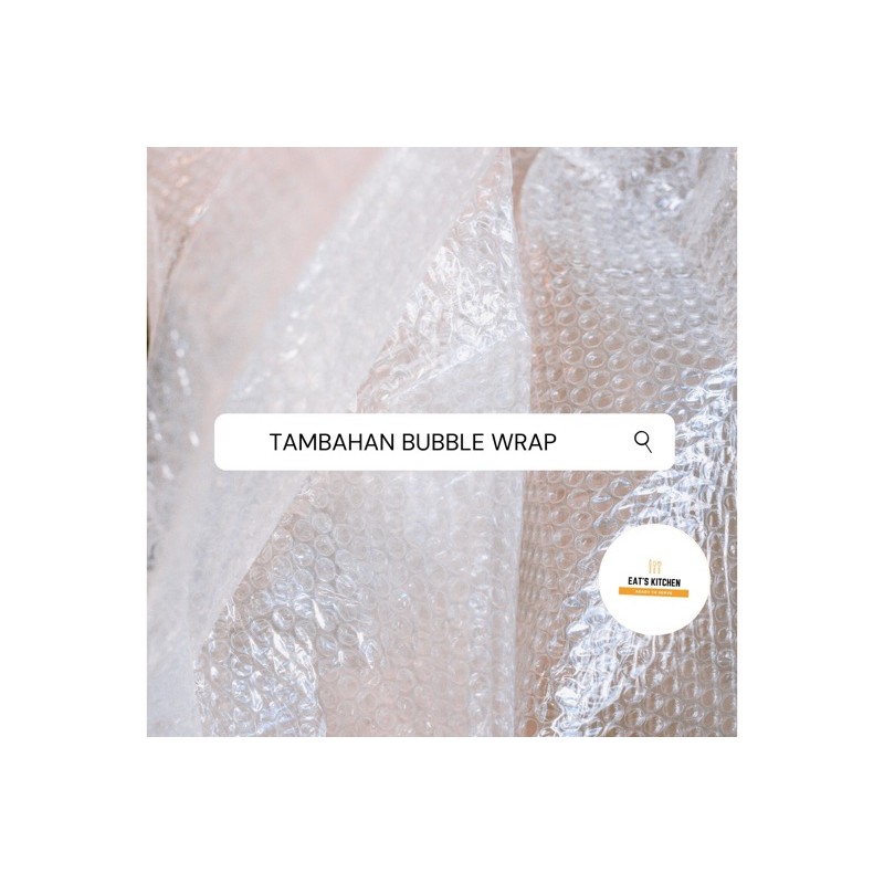 Tambahan bubble buat yang takut kuenya hancur di perjalanan,dari kami sudah packing sebaik mungkin & sticker fragile. Jika ingin lebih aman lagi bisa checkout bubble.