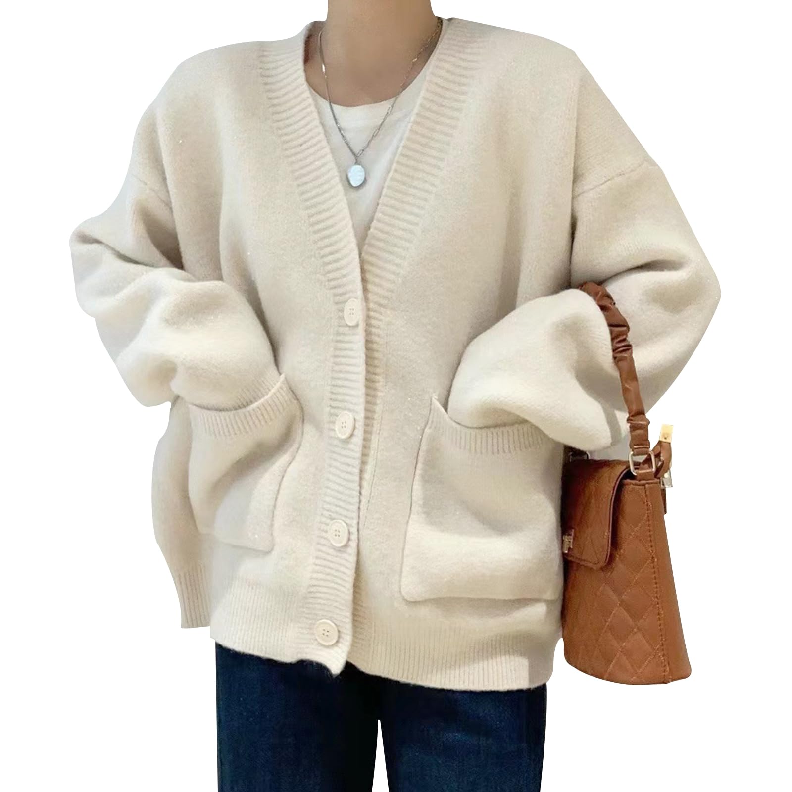 ADKASS Трикотажная школьная туника Свободная Однотонная Открытая Для холодной погоды Длинный женский кардиган, Свитер, Кардиган, V-образный вырез, Длина, Подчеркивающий фигуру, Стройнящий, Посадка,