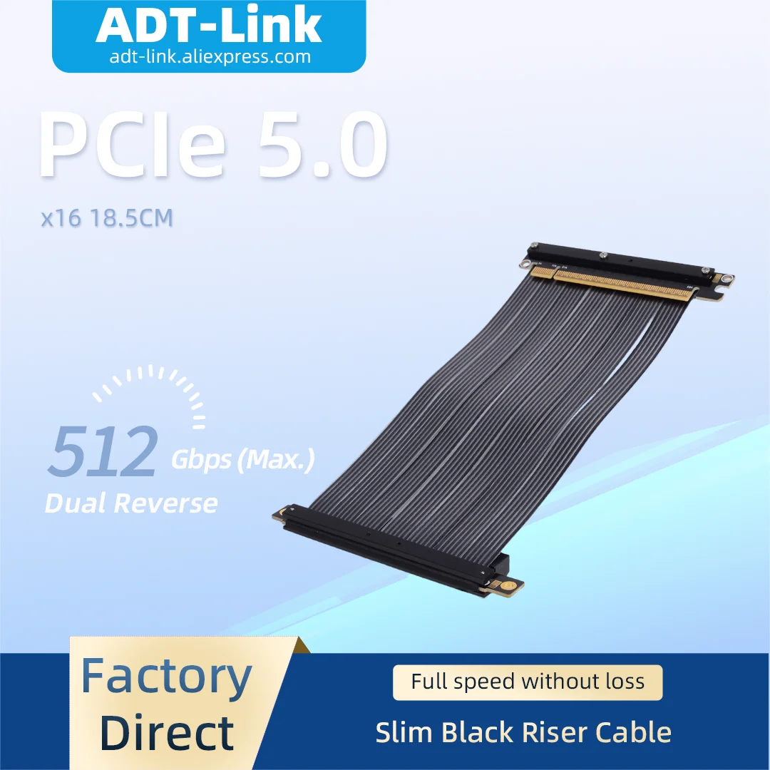 ADT-Link 512Gbps PCIe 5.0 x16 Double Reverse Graphics Card Riser Adapter High-Speed Lossless Extension Cable For Nvida AMD
