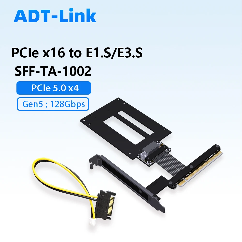 ADT-Link PCIe 5.0 X16 To E1.S/E3.S SFF-TA-1002 SSD Extend Adapter Riser Cable Speed 5.0 X4 Gen5 128Gbps Customized 5cm-100cm