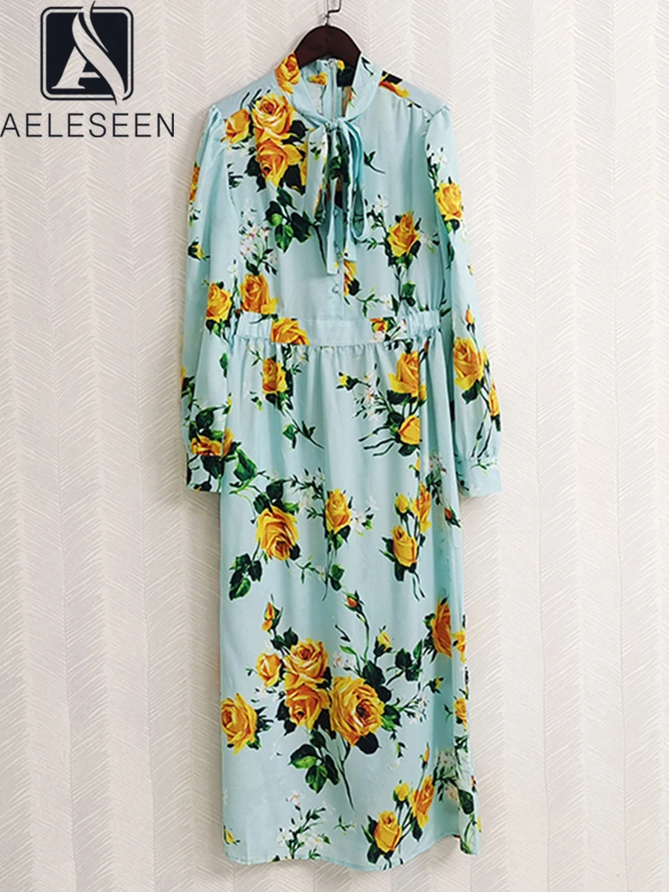 AELESEEN модное подиумное Элегантное Длинное Сицилийское платье весна-лето 2022, женское синее платье с цветочным принтом и поясом, вечерние платья для отдыха