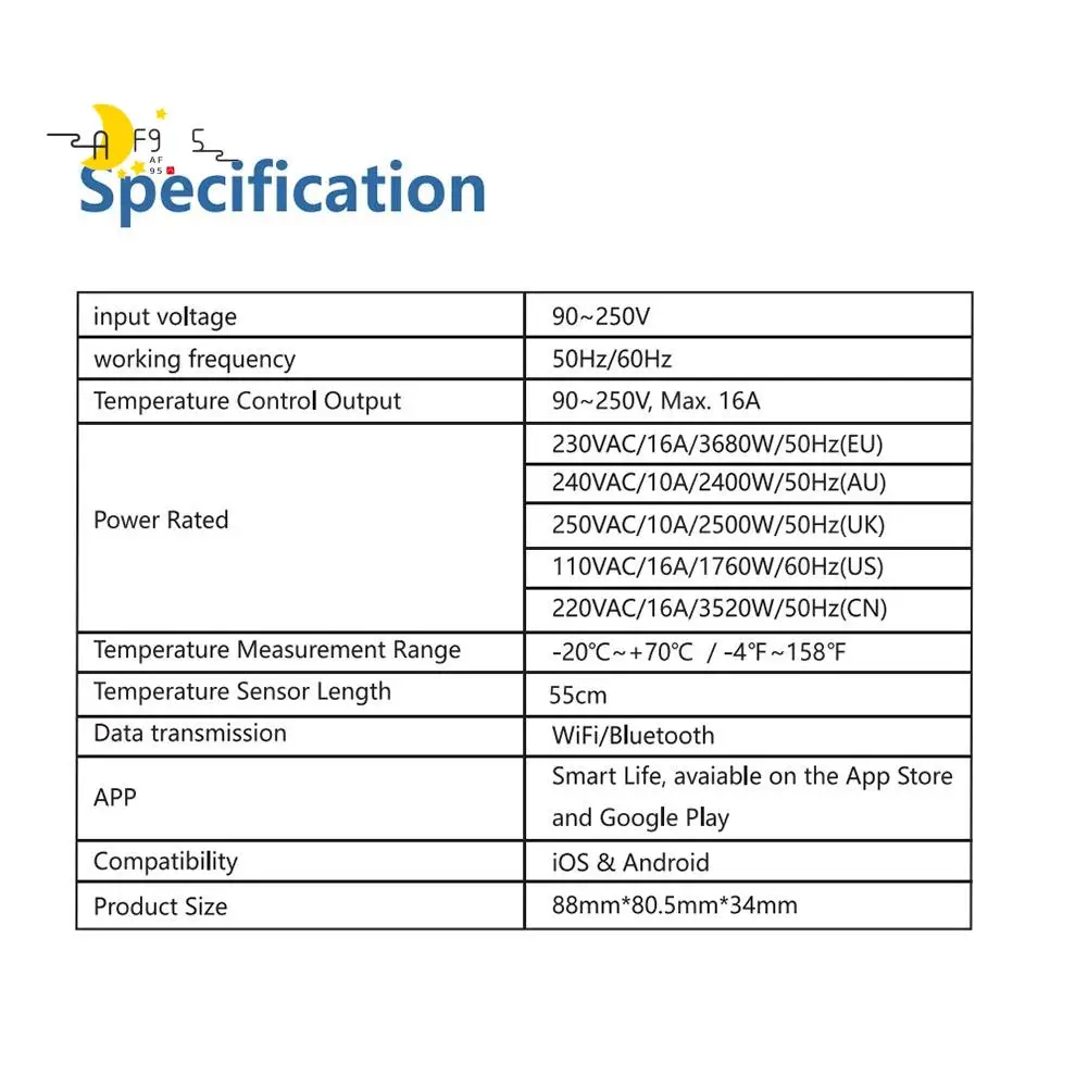 AF95-1 PC Wifi Smart Thermostatic Plastic Socket Temperature Controller Programmable For Smartlife Alexa Google Assistant EU Plu