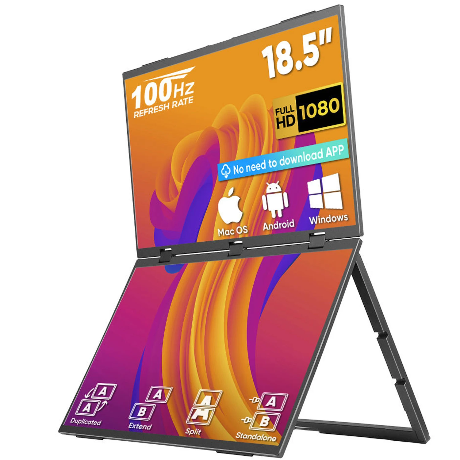 AHXJKA 18.5"100Hz Stacked Foldable Dual Portable Monitor FHD 100%sRGB Laptop Screen Extender Portable Monitor for Windows Mac OS