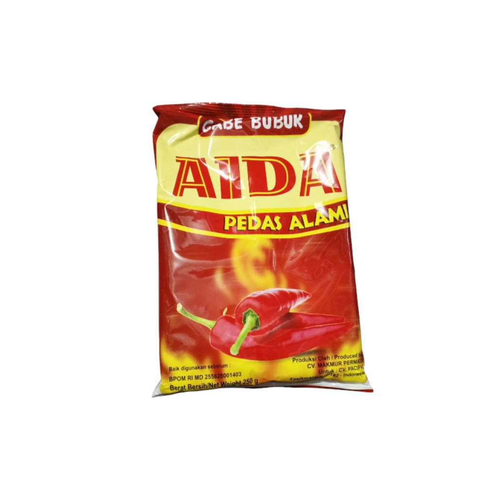 AIDA terbuat dari 100% cabai kering pilihan yang di proses dengan baik sehingga menghasilkan aroma dan sensasi pedas alami. Dapat digunakan pada mie bakso kupat tahu, bubur ayam, baso tahu, Lengkong, soto, makanan ringan dan lain lain.