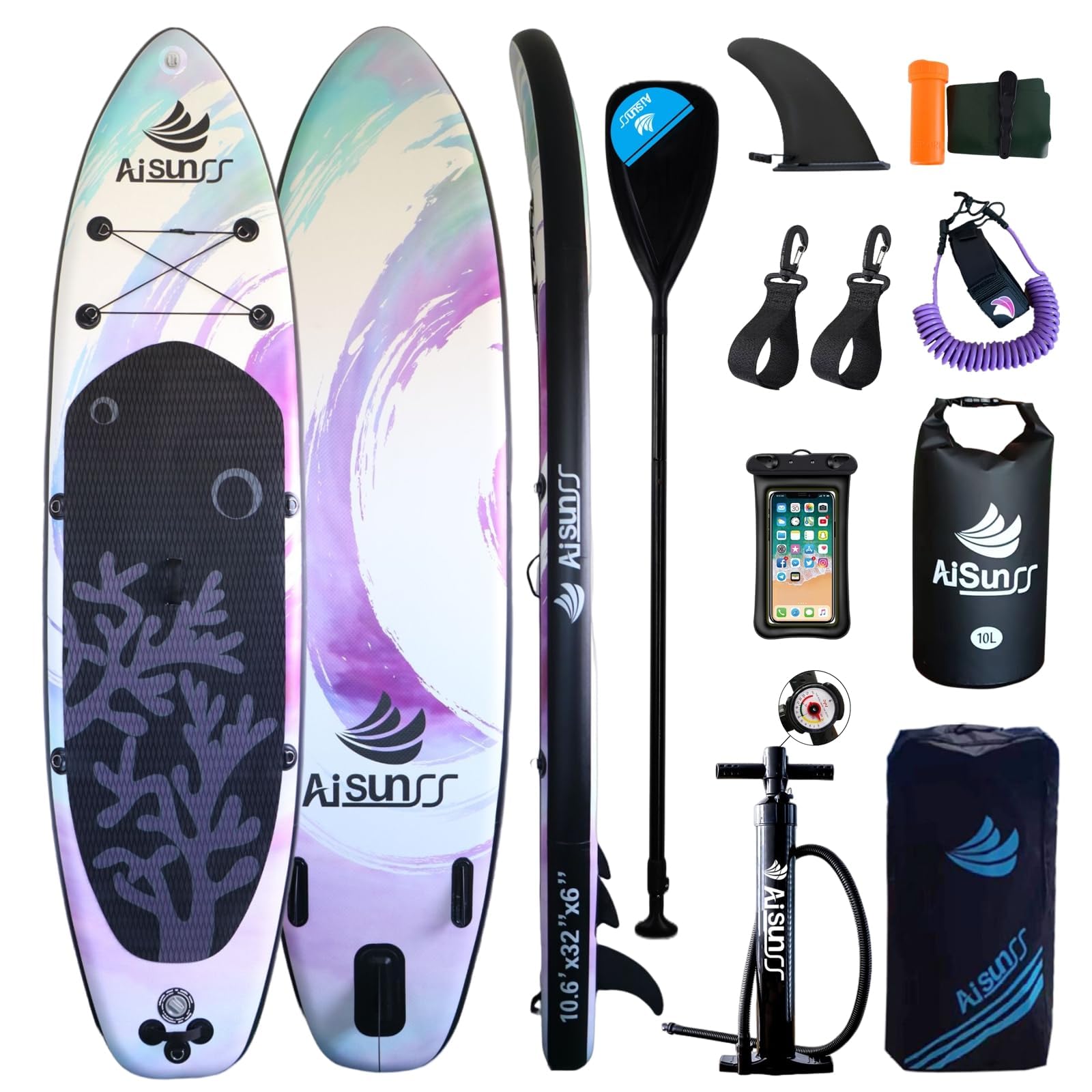 AISUNSS SUP Надувной 320см 81см 15см Речной Полный Комплект Надувная Доска для Серфинга Коралловая Доска, Доска для Гребли Стоя, Длинная, Широкая, Толстая, Стабильная,