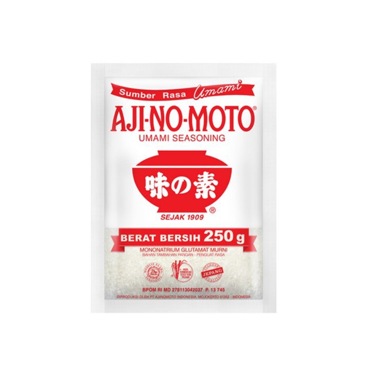 AJI-NO-MOTO® adalah penyedap rasa yang dibuat melalui proses fermentasi dengan bahan baku utama tetes tebu pilihan. Berstandar internasional dan dibawah lisensi Ajinomoto Co., Inc., Jepang sebagai perusahaan pertama yang memproduksi penyedap rasa sejak 1909.