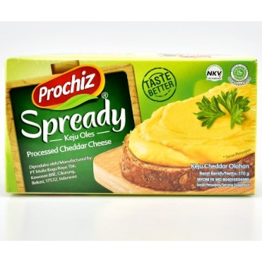 Prochiz Spready merupakan keju cheddar olahan yang nikmat dengan tekstur lembek.