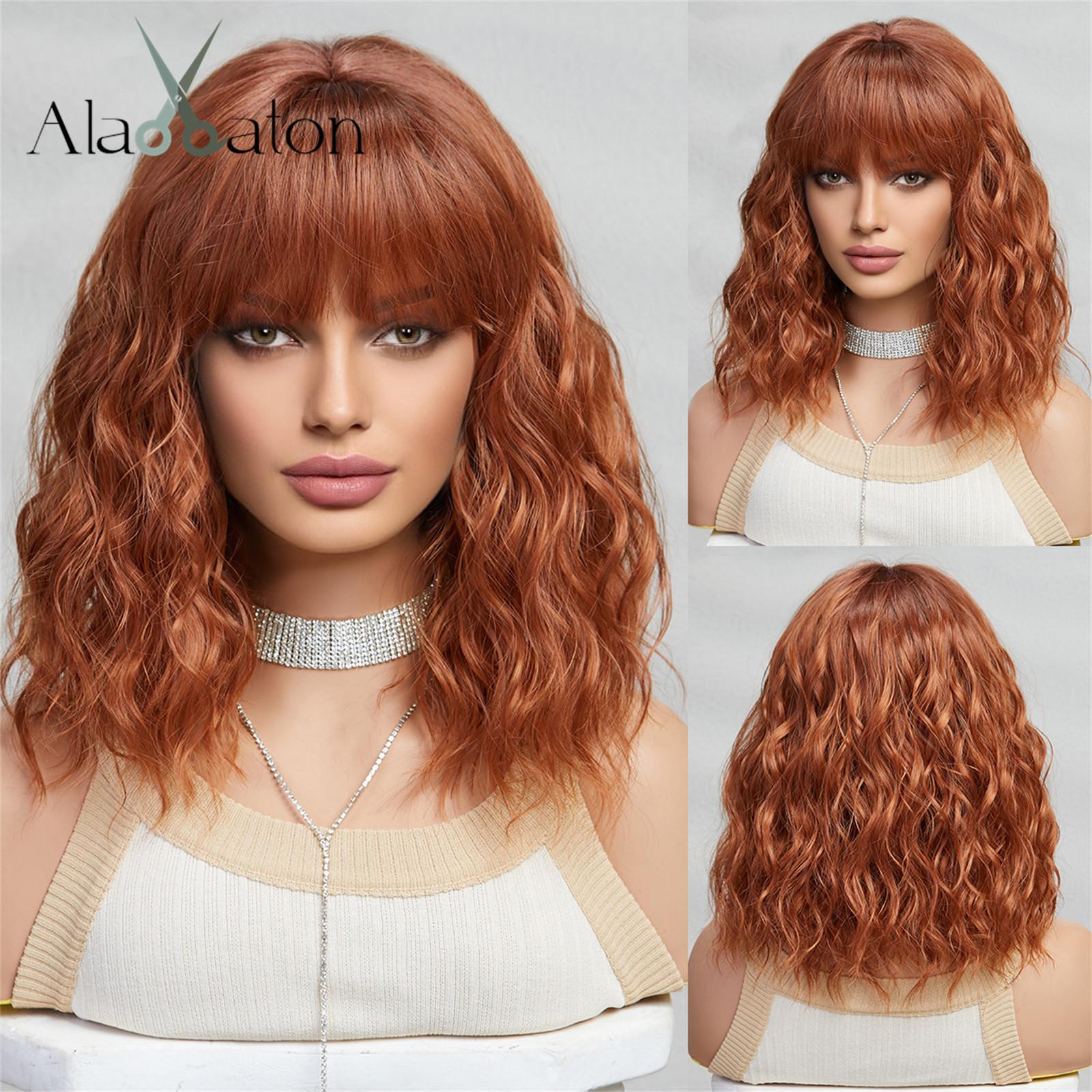 ALAN EATON Короткие синтетические парики BOB Оранжево-коричневый вьющийся парик с челкой для женщин Косплей Ежедневная вечеринка Парик из термостойкого волокна