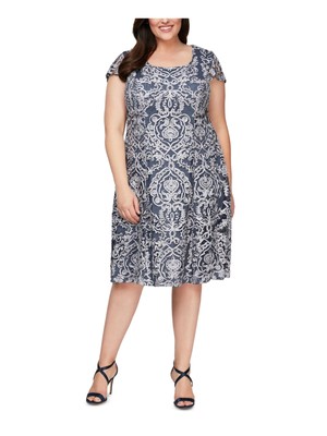 ALEX EVENINGS Синее женское вечернее платье из тюля синего цвета с частичной подкладкой Plus, Синий