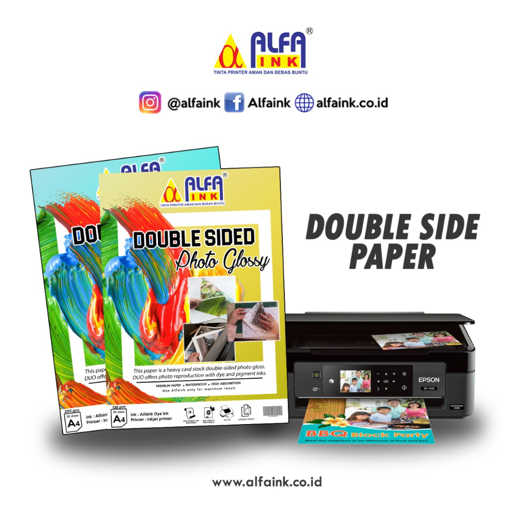 Kertas foto yang punya kemampuan mencetak di 2 sisinya yang berbahan glossy, berukuran A4 dengan 2 pilihan ketebalan dan isi sebanyak 20sheet.