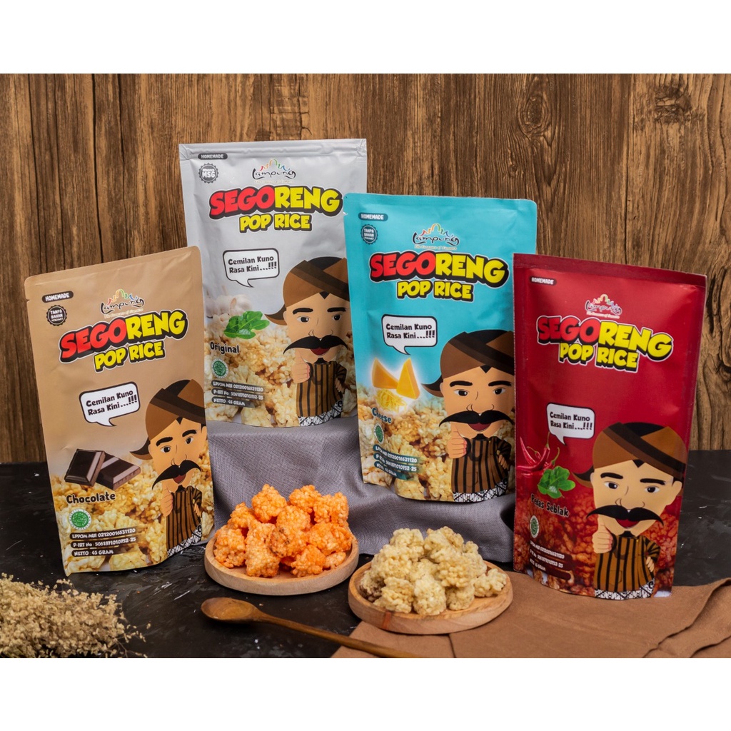 ALL VARIAN SEGORENG terdiri dari varian coklat, keju, original, dan pedas seblak merupakan kerupuk nasi kekinian yang berpadu dengan taburan bumbu pilihan dan rempah tradisional. Makanan khas lokal dan produksi home-made.