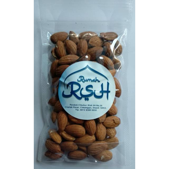 Kacang almond banyak banget manfaatnya diimport dari California Amerika dan sudah melalui proses seleksi, kualitas terbaik. Halal