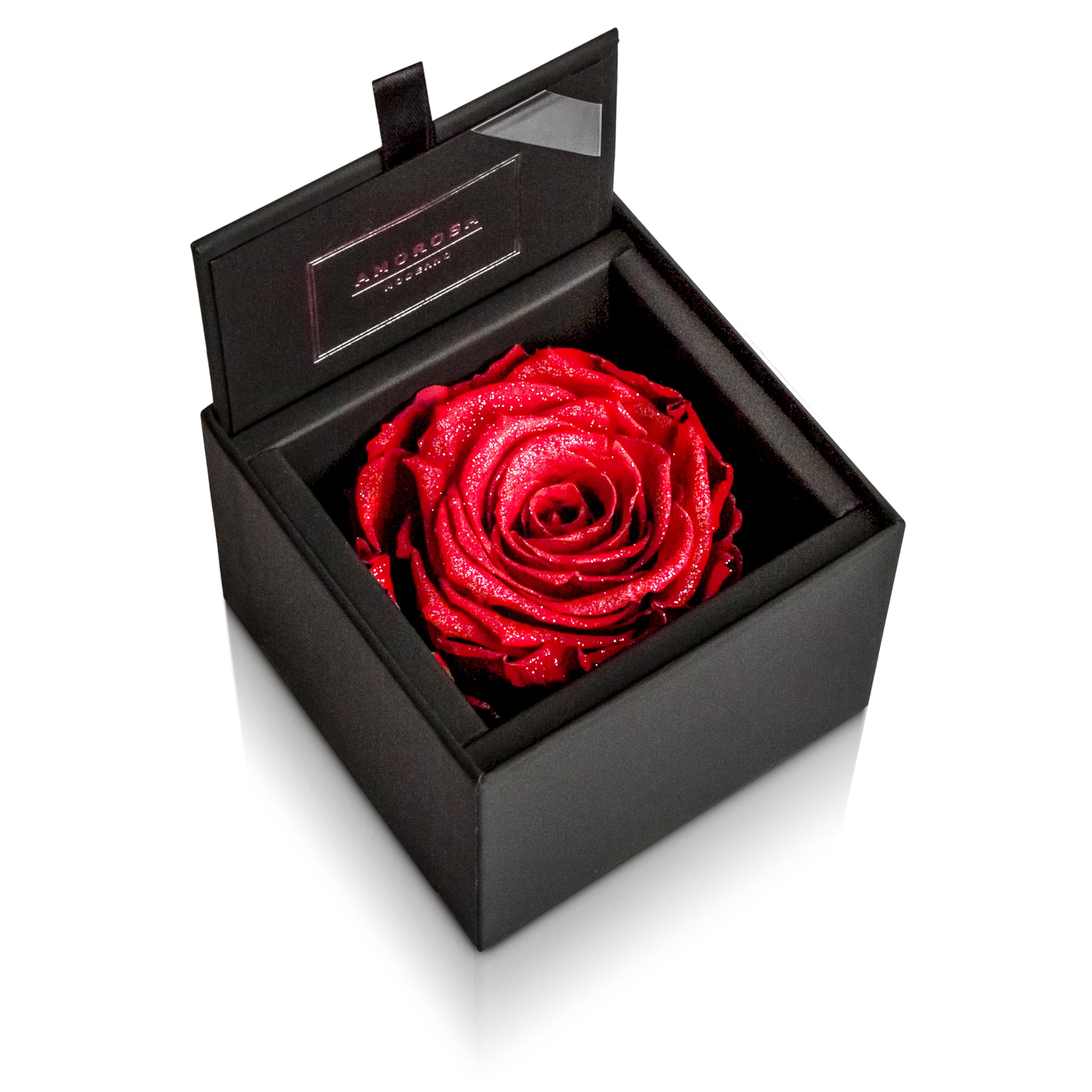 AMOROSA Сохраненные цветы Коробка с бриллиантовыми розами 85 ярко-красных роз Подарочные цветы День рождения Свадьба Юбилей Предложение Сухоцветы AM85FS-30