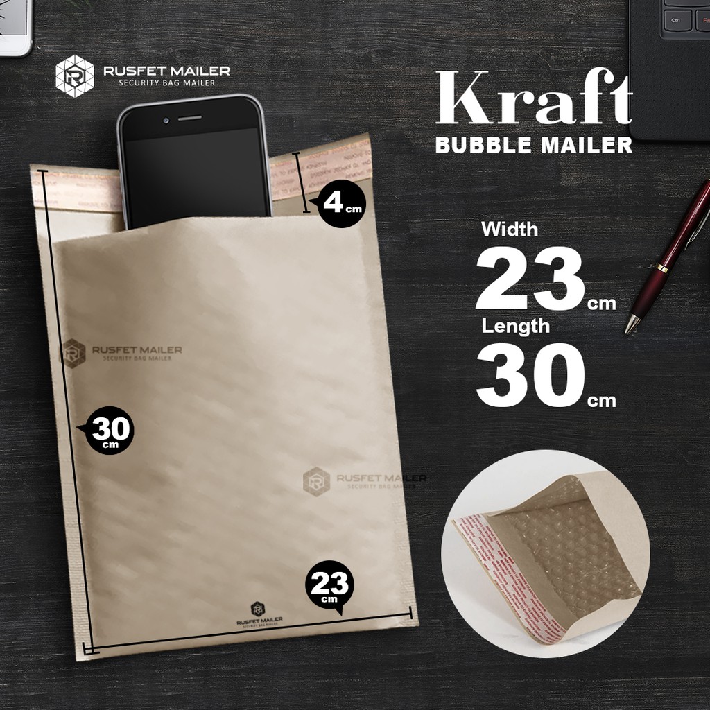 AMPLOP BUBBLE MAILER / BUBBLE PACKING KRAFT PAPER - SECURITY BAG - RUSFET 23X30