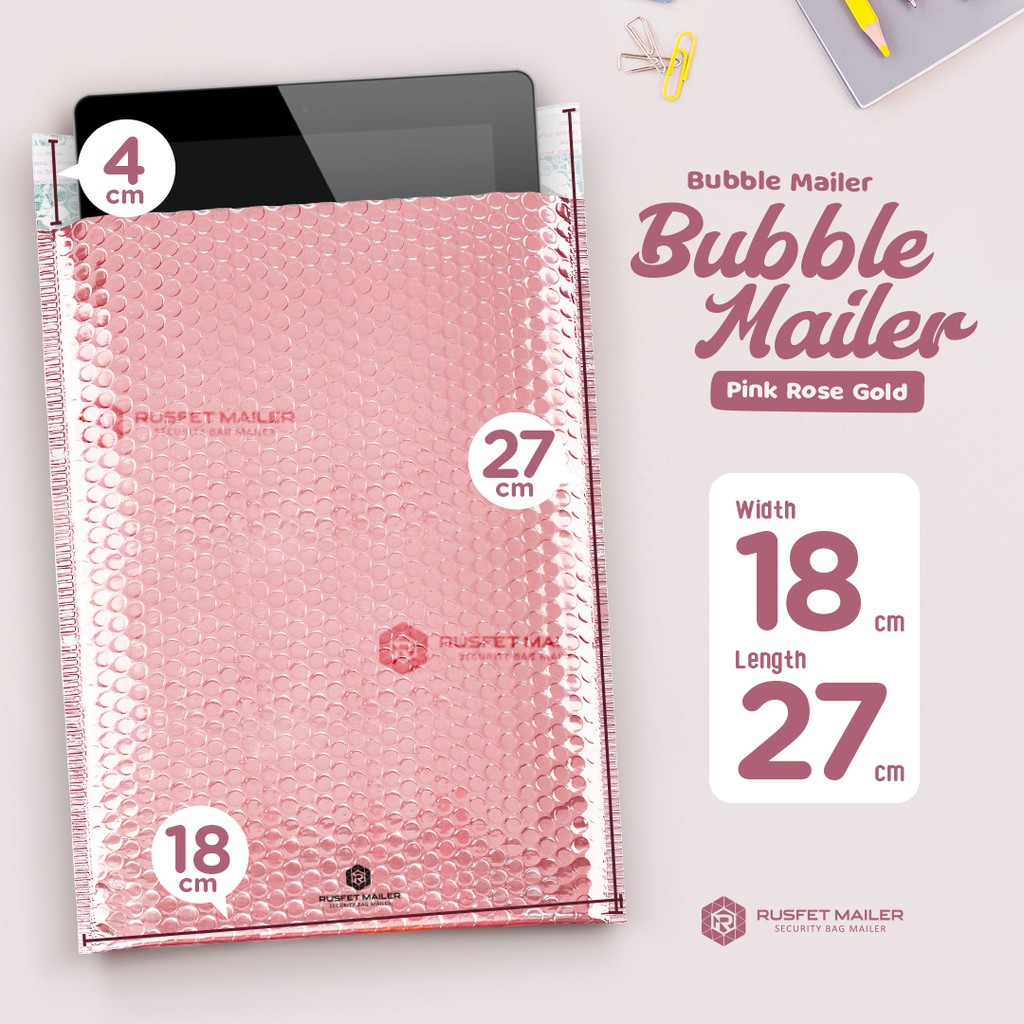 AMPLOP BUBBLE MAILER / BUBBLE PACKING PINK ROSE GOLD - SECURITY BAG - RUSFET 18X27