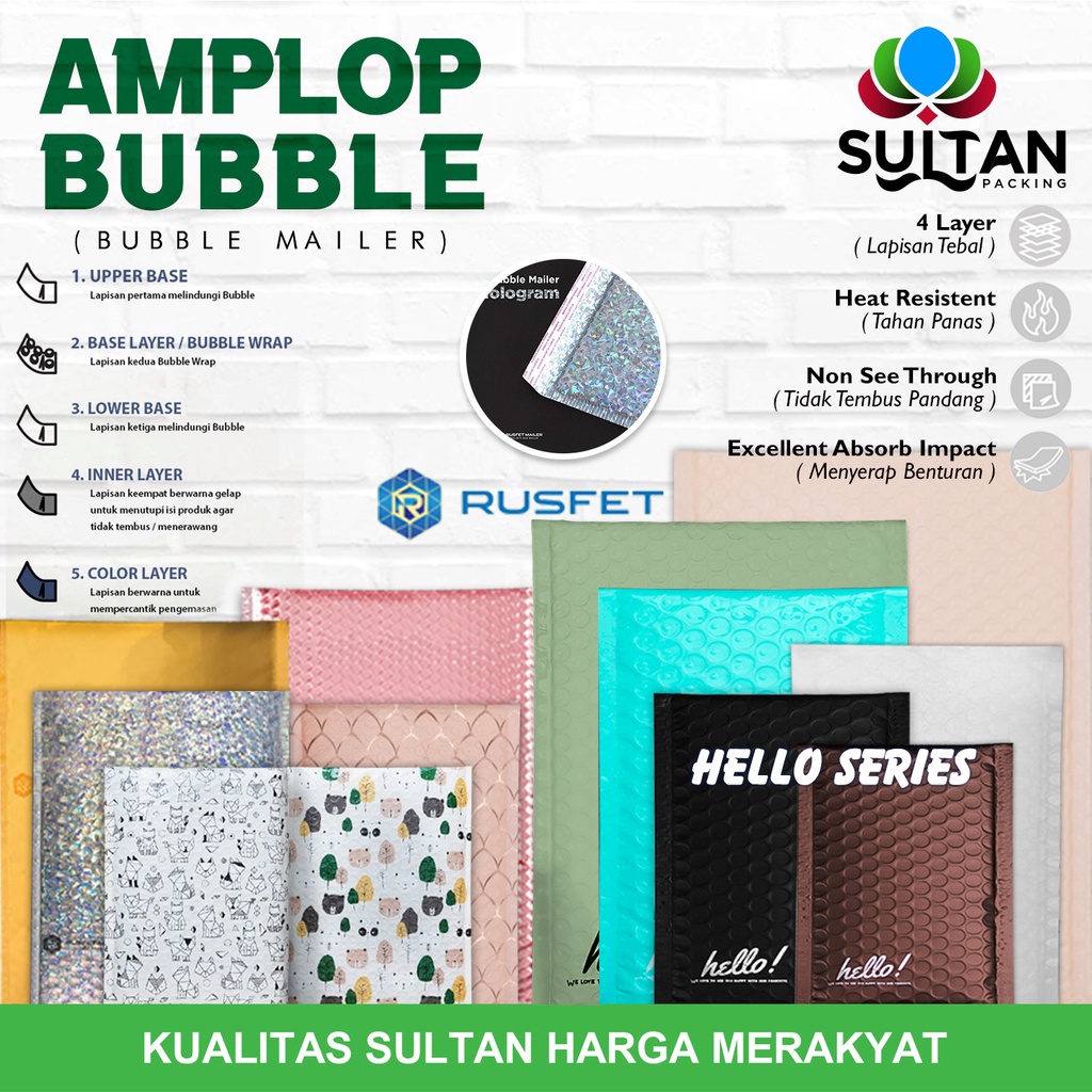 Amplop Bubble pertama di Indonesia yang mempunya 5 lapisan pelindung. Perpaduan warna yang elegan, dapat menjadikan produk anda lebih mewah dan mempunyai daya tarik tersendiri dibandingkan yang lain.