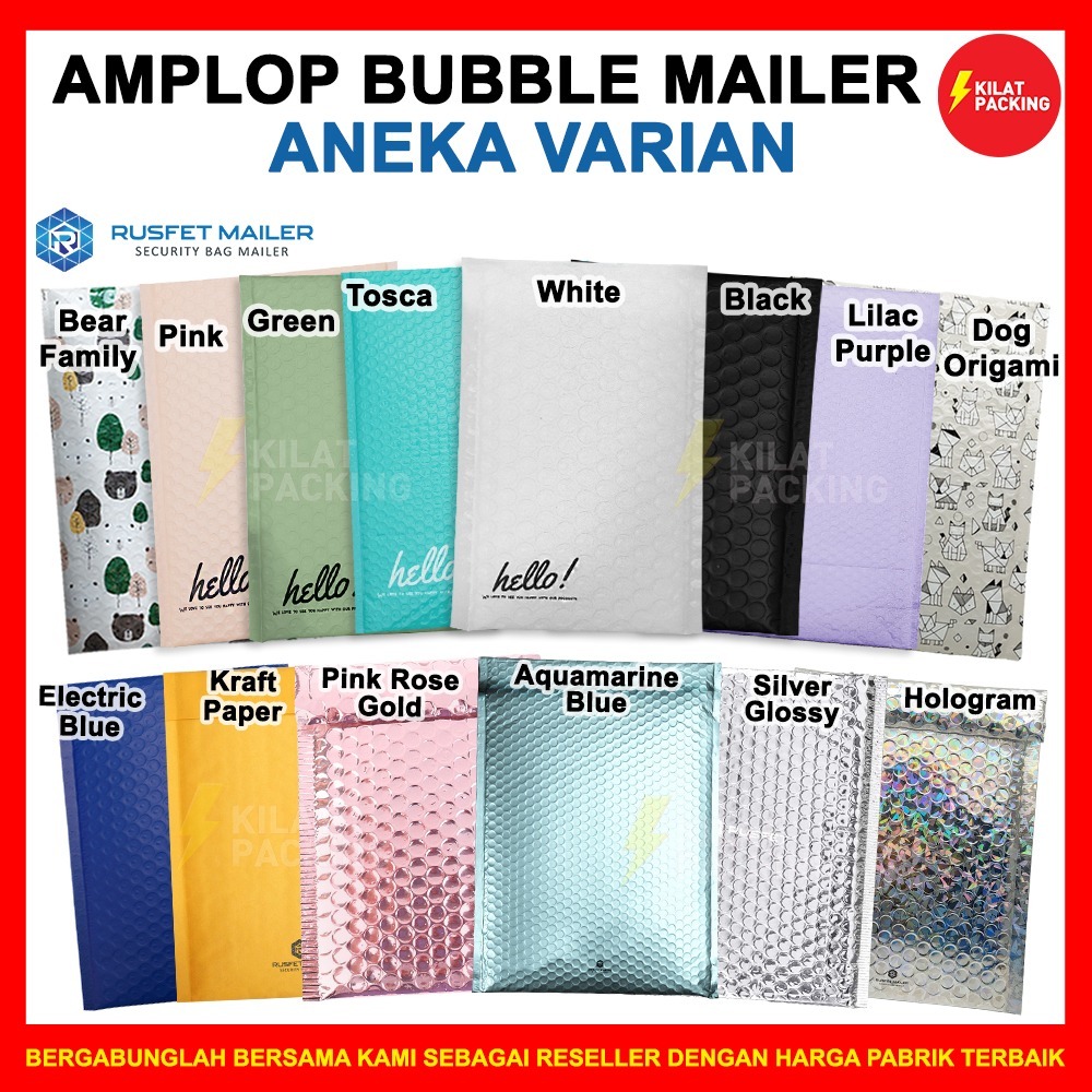 AMPLOP BUBBLE MURAH | BUBBLE MAILER | POLYBUBBLE PACKING OLSHOP RUSFET VARIAN POLOS ANEKA WARNA