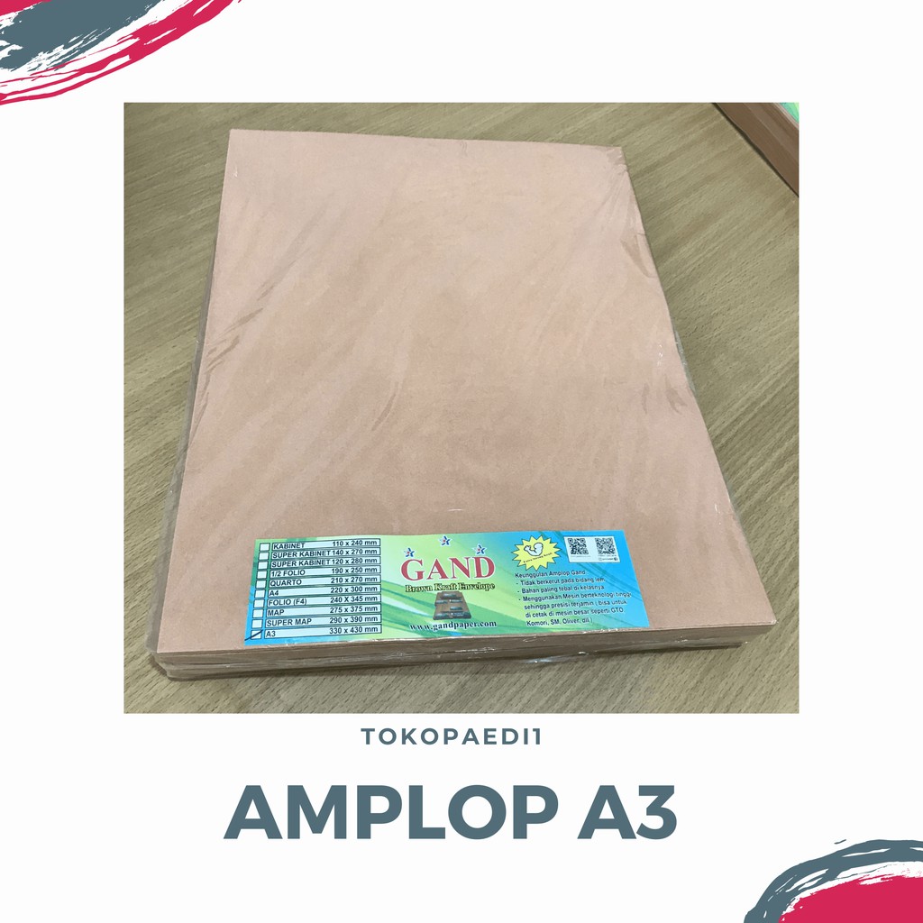 Amplop ukuran A3 29.7 x 42.0 cm cm merk Gand. Bahan tebal dengan Harga terjangkau, dapat anda gunakan untuk Surat menyurat atau menyimpan Surat berharga.