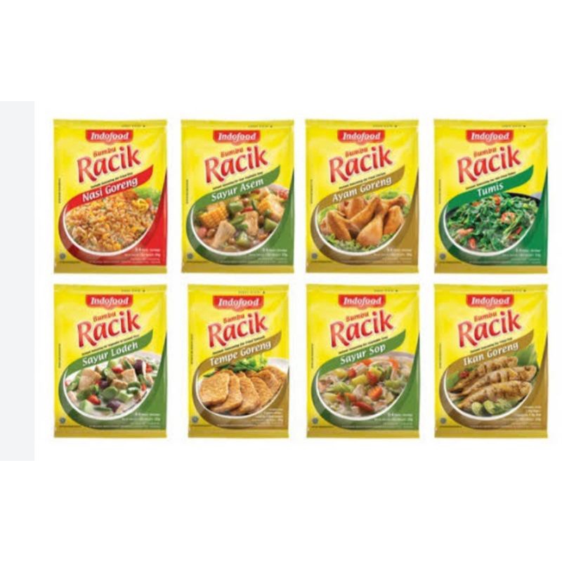 Aneka bumbu racik bubuk tersedia 5 rasa,,,Ayam goreng, Ikan goreng, Nasi goreng, Tempe goreng, Tumis dan Sayur sop,,,di jual per 1 bungkus,,,bumbu instan, enak dsn ekonomis,,,yuk di order