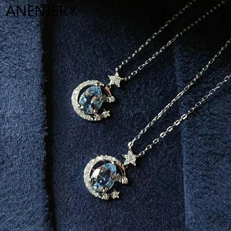 ANENJERY Ожерелье из синего циркона со звездой и луной для женщин Простой дизайн Романтичные роскошные ювелирные изделия оптом